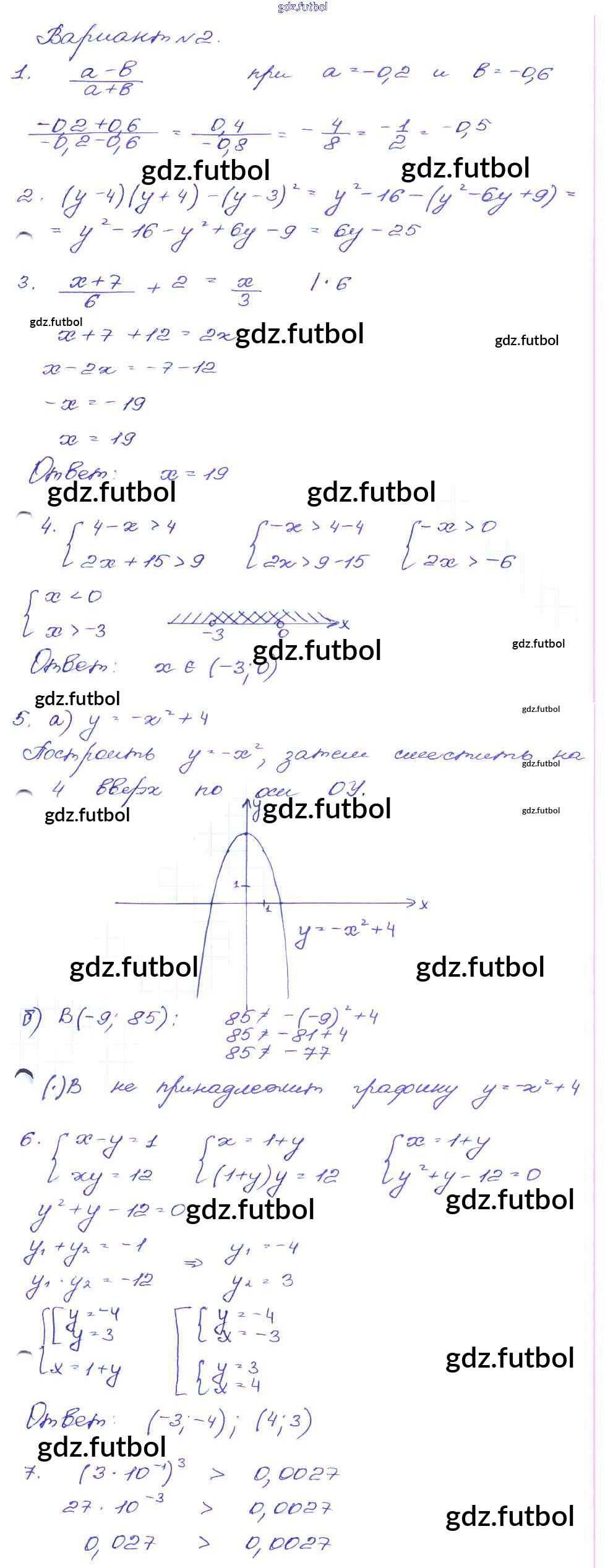 Готовые домашние задания по Алгебре за 9 класс Кузнецова Сборник заданий 2008 ФГОС - Работа 65 Вариант-2