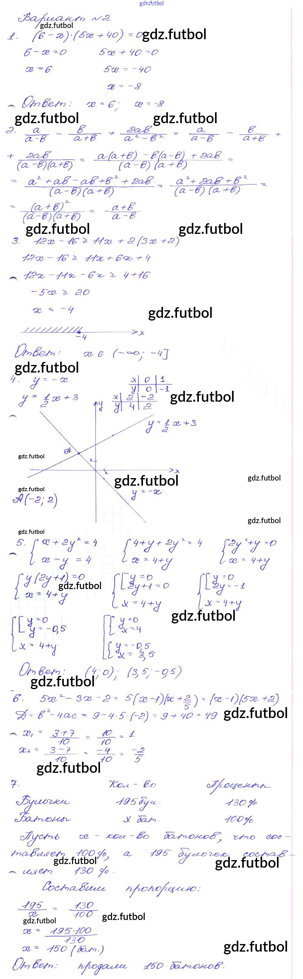Готовые домашние задания по Алгебре за 9 класс Кузнецова Сборник заданий 2008 ФГОС - Работа 69 Вариант-2