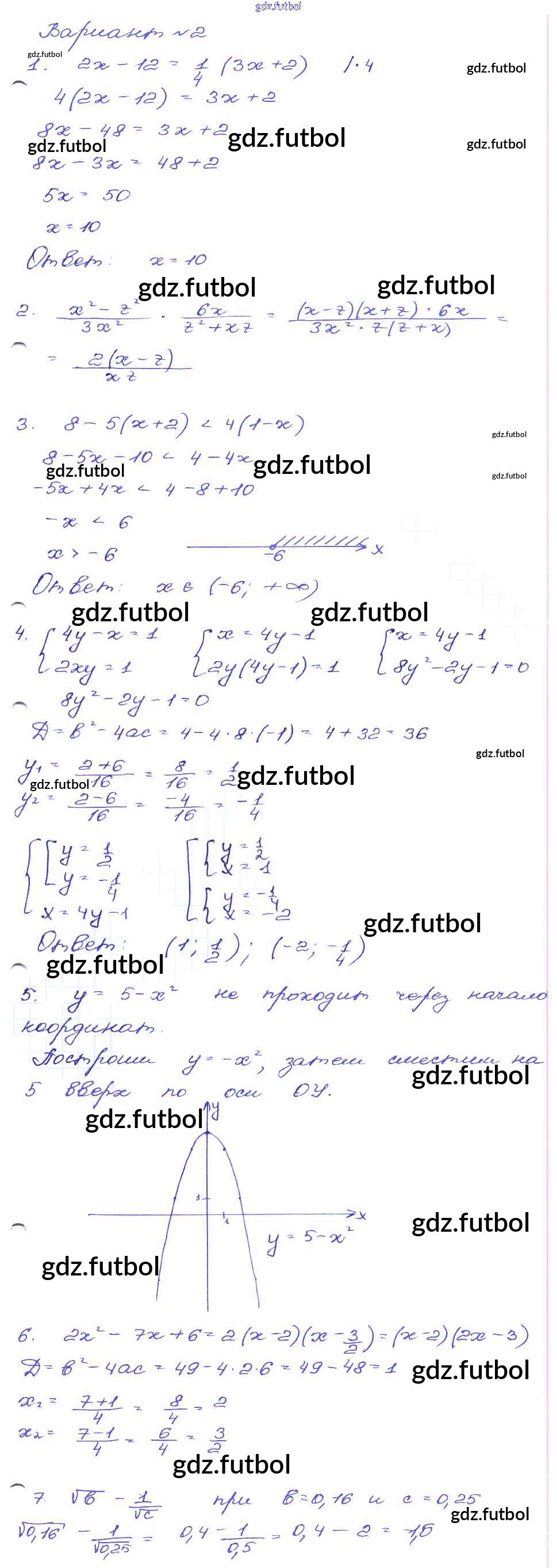 Готовые домашние задания по Алгебре за 9 класс Кузнецова Сборник заданий 2008 ФГОС - Работа 71 Вариант-2