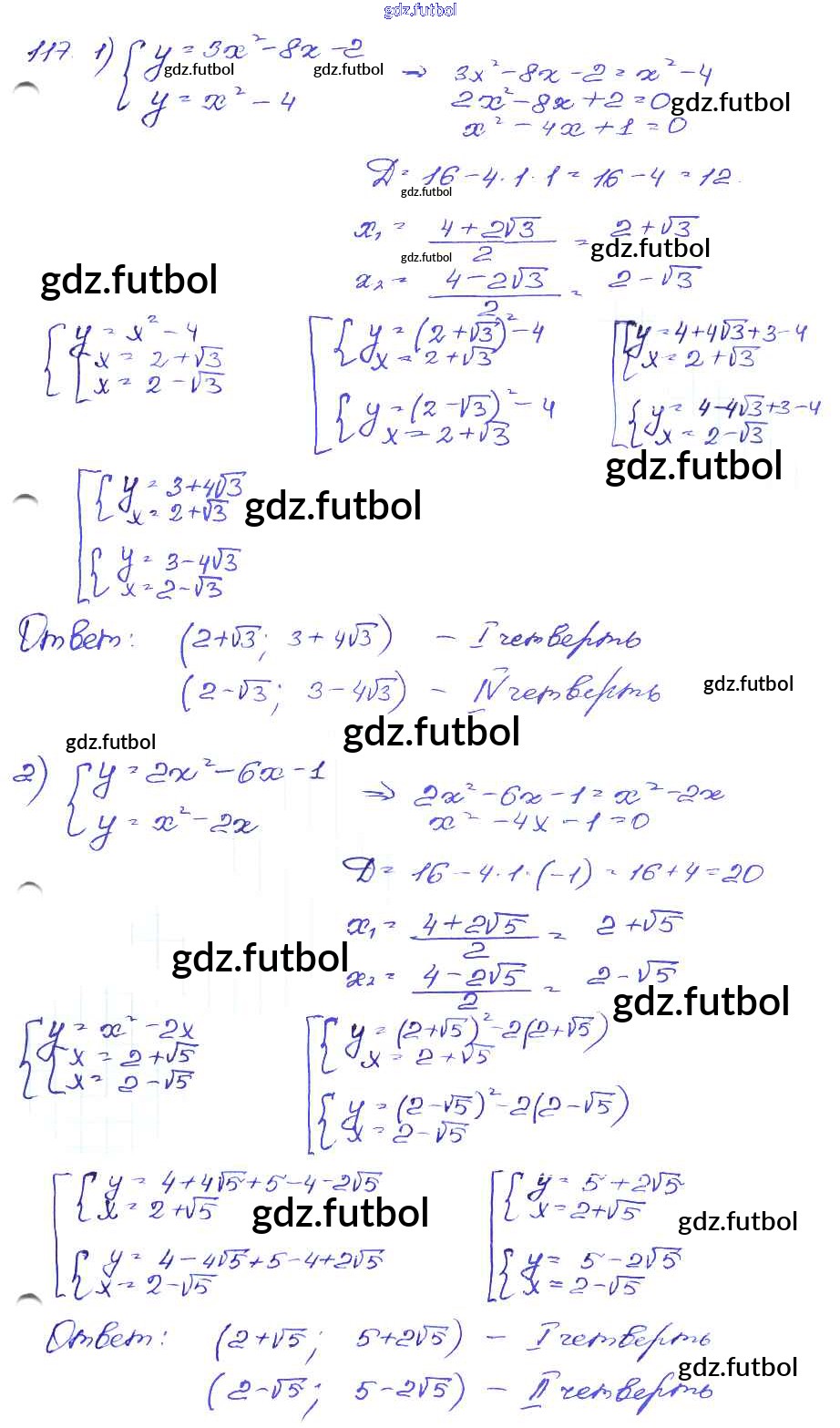 Готовые домашние задания по Алгебре за 9 класс Кузнецова Сборник заданий 2008 ФГОС - Часть 2. Задания 117