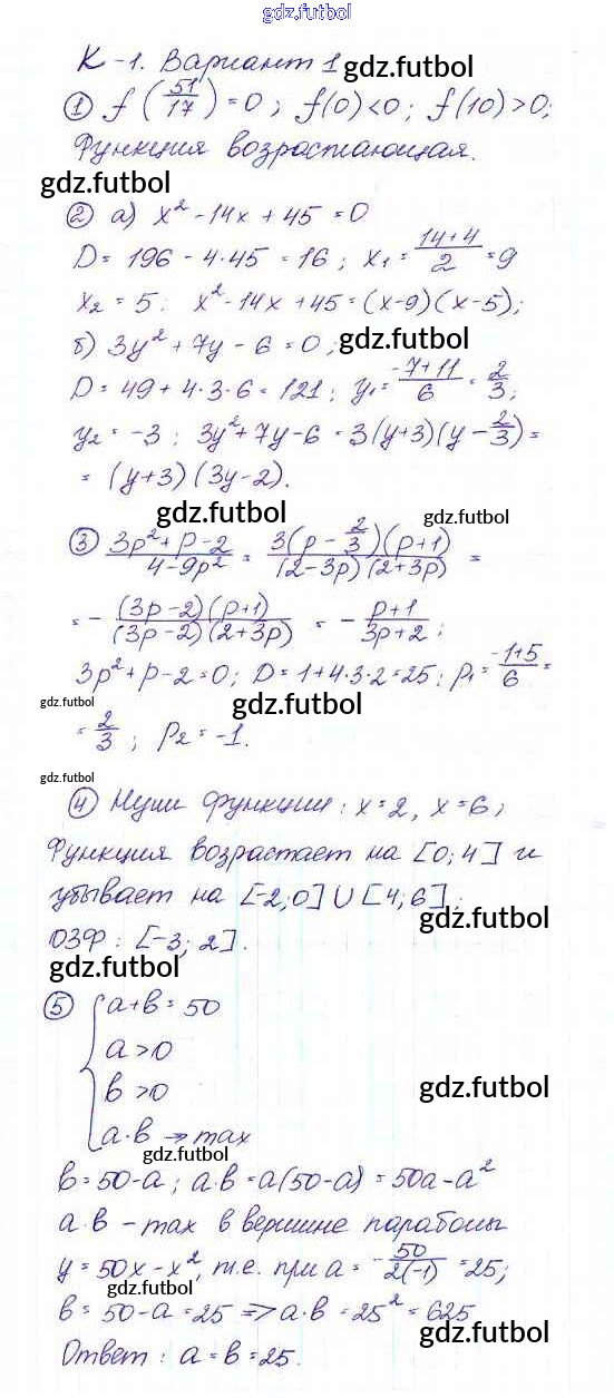 Готовые домашние задания по Алгебре за 9 класс Макарычев Дидактические материалы 2015 ФГОС - КР-1 Вариант 1