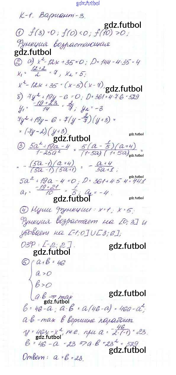 Готовые домашние задания по Алгебре за 9 класс Макарычев Дидактические материалы 2015 ФГОС - КР-1 Вариант 3
