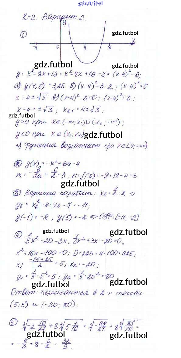 Готовые домашние задания по Алгебре за 9 класс Макарычев Дидактические материалы 2015 ФГОС - КР-2 Вариант 2