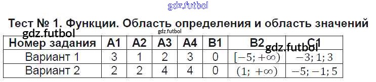 Готовые домашние задания по Алгебре за 9 класс Мартышова Контрольно-измерительные материалы (КИМ) 2015 ФГОС - Тесты Тест №1. Функции. Область определения и область значений