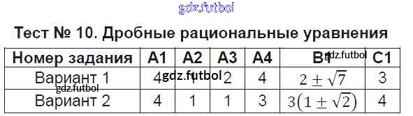 Готовые домашние задания по Алгебре за 9 класс Мартышова Контрольно-измерительные материалы (КИМ) 2015 ФГОС - Тесты Тест №10. Дробные рациональные уравнения