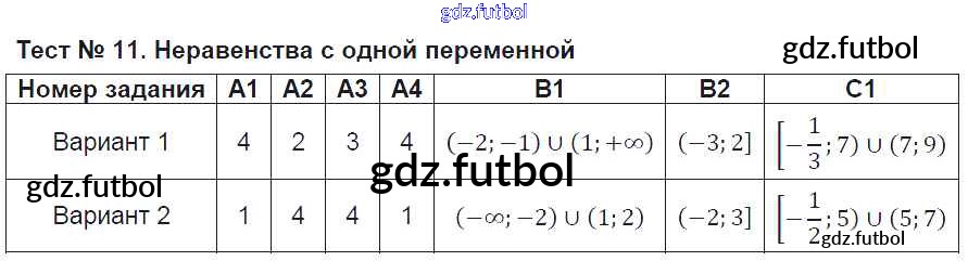 Готовые домашние задания по Алгебре за 9 класс Мартышова Контрольно-измерительные материалы (КИМ) 2015 ФГОС - Тесты Тест №11. Неравенства с одной переменной