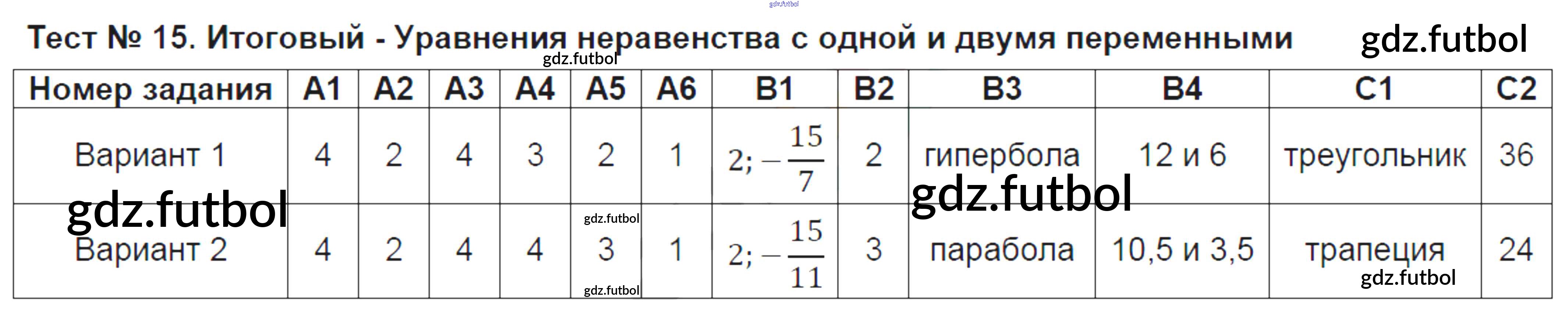 Готовые домашние задания по Алгебре за 9 класс Мартышова Контрольно-измерительные материалы (КИМ) 2015 ФГОС - Тесты Тест №15. Итоговый - Уравнения неравенства с одной и двумя переменными