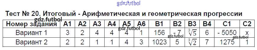 Тест №20. Итоговый - Арифметическая и геометрическая прогрессии
