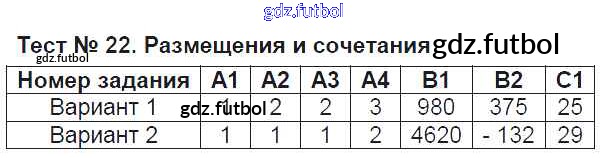 Готовые домашние задания по Алгебре за 9 класс Мартышова Контрольно-измерительные материалы (КИМ) 2015 ФГОС - Тесты Тест №22. Размещения и сочетания