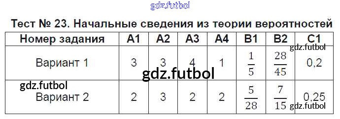 Готовые домашние задания по Алгебре за 9 класс Мартышова Контрольно-измерительные материалы (КИМ) 2015 ФГОС - Тесты Тест №23. Начальные сведения из теории вероятностей