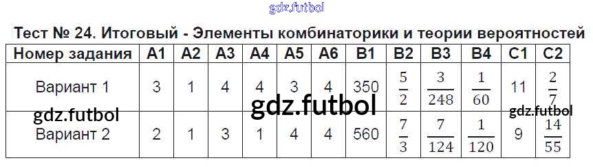 Готовые домашние задания по Алгебре за 9 класс Мартышова Контрольно-измерительные материалы (КИМ) 2015 ФГОС - Тесты Тест №24. Итоговый - Элементы комбинаторики и теории вероятностей