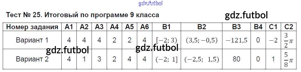 Готовые домашние задания по Алгебре за 9 класс Мартышова Контрольно-измерительные материалы (КИМ) 2015 ФГОС - Тесты Тест №25. Итоговый по программе 9 класса