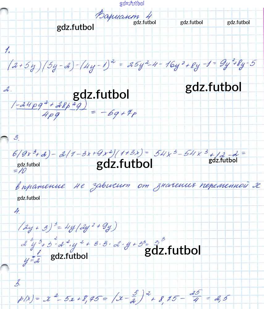 Готовые решения задач (ГДЗ) по Алгебре седьмой-девятый класс Мордкович Контрольные работы Углубленный уровень 2016 ФГОС - КР-6. Варианты 7 Класс 4 доступны для различных учебных материалов. У нас вы сможете найти авторские решения для всех пособий, предназначенных для школьников. Не секрет, что в настоящее время многие школьники прибегают к использованию готовых решебников, ведь они содержат подробные ответы для каждого упражнения, представленного в учебнике.