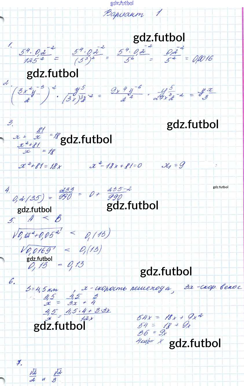 Готовые домашние задания по Алгебре за 9 класс Мордкович Контрольные работы Углубленный уровень 2016 ФГОС - КР-2. Варианты 1