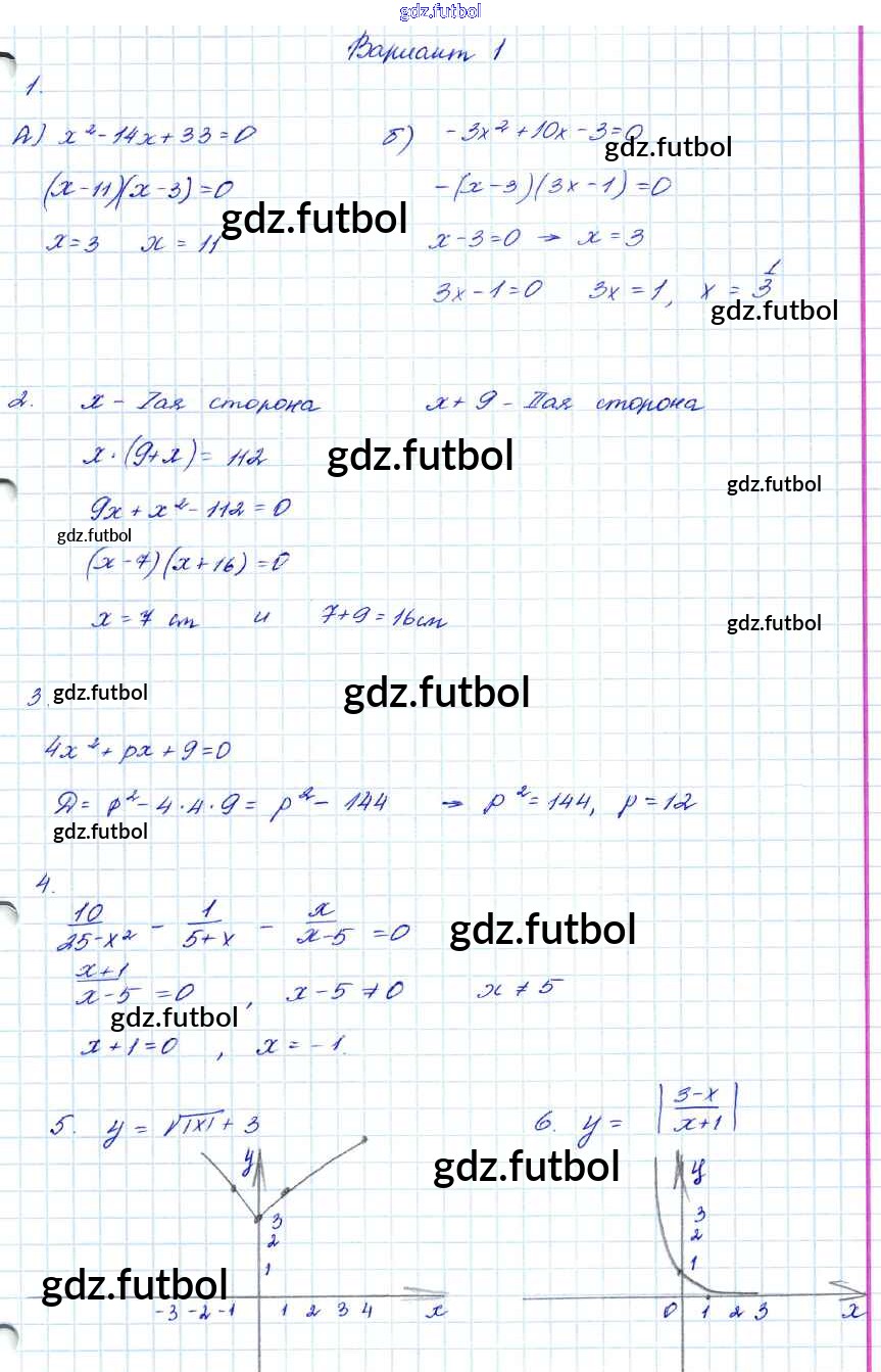 Готовые домашние задания по Алгебре за 9 класс Мордкович Контрольные работы Углубленный уровень 2016 ФГОС - КР-5. Варианты 1