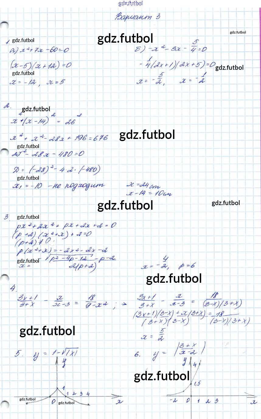 Готовые домашние задания по Алгебре за 9 класс Мордкович Контрольные работы Углубленный уровень 2016 ФГОС - КР-5. Варианты 3