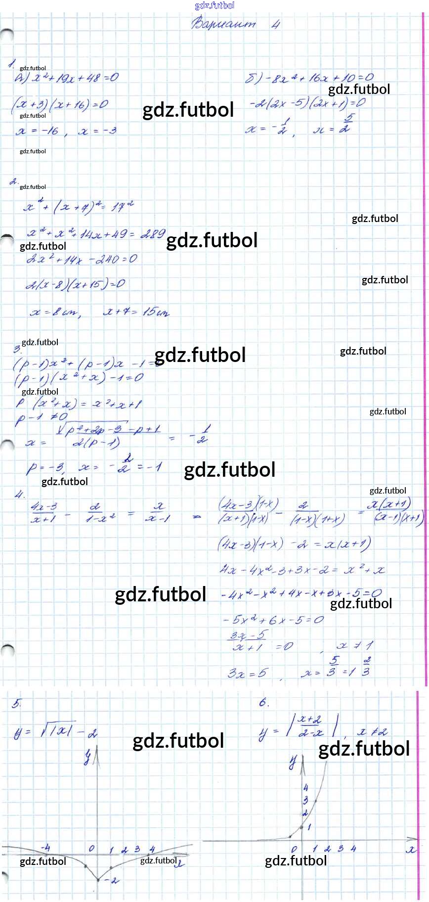 Готовые домашние задания по Алгебре за 9 класс Мордкович Контрольные работы Углубленный уровень 2016 ФГОС - КР-5. Варианты 4