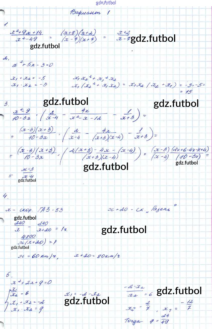 Готовые домашние задания по Алгебре за 9 класс Мордкович Контрольные работы Углубленный уровень 2016 ФГОС - КР-6. Варианты 1