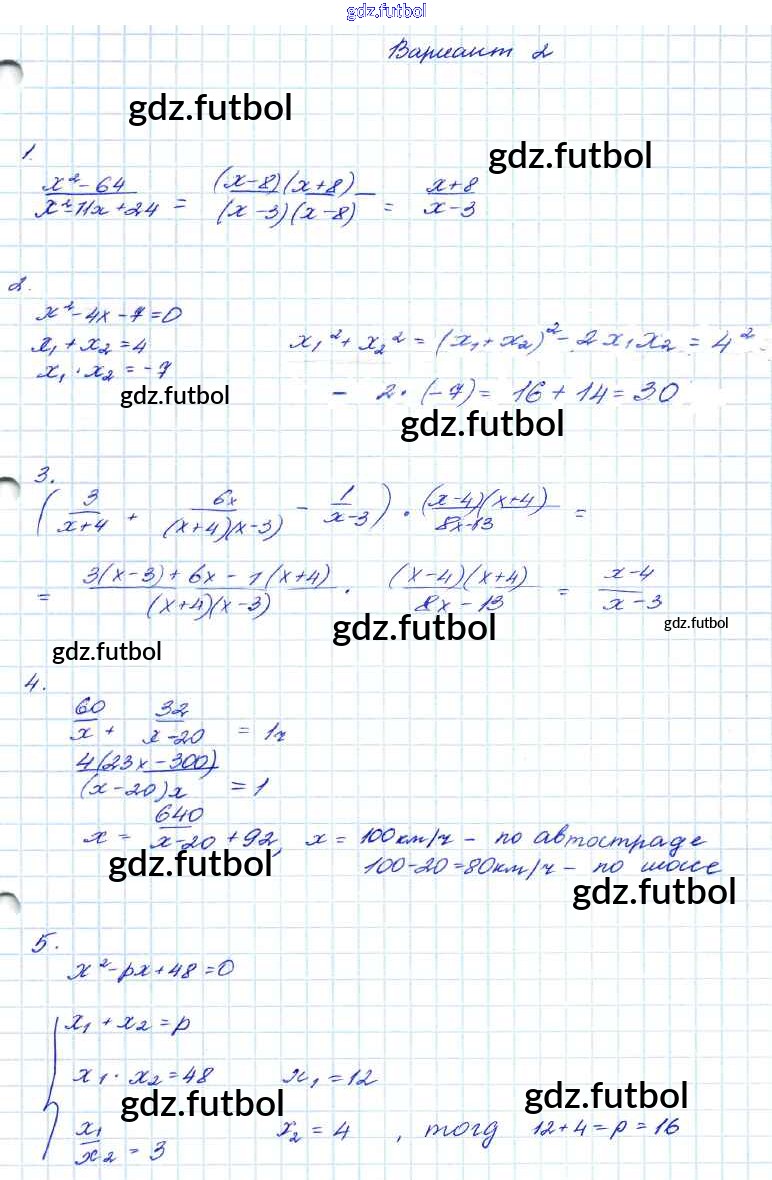 Готовые домашние задания по Алгебре за 9 класс Мордкович Контрольные работы Углубленный уровень 2016 ФГОС - КР-6. Варианты 2