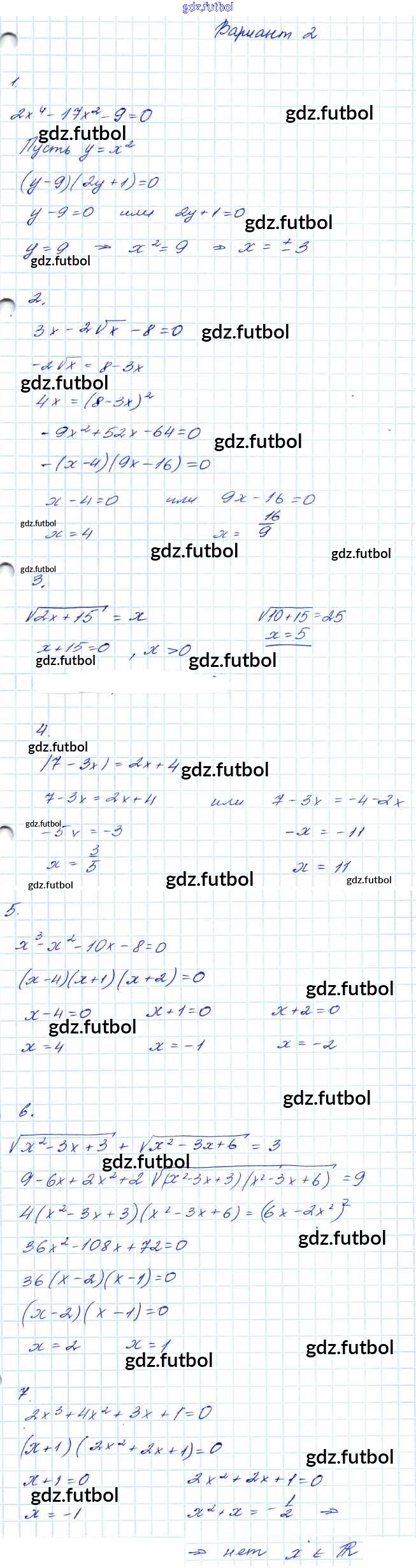 Готовые домашние задания по Алгебре за 9 класс Мордкович Контрольные работы Углубленный уровень 2016 ФГОС - КР-8. Варианты 2