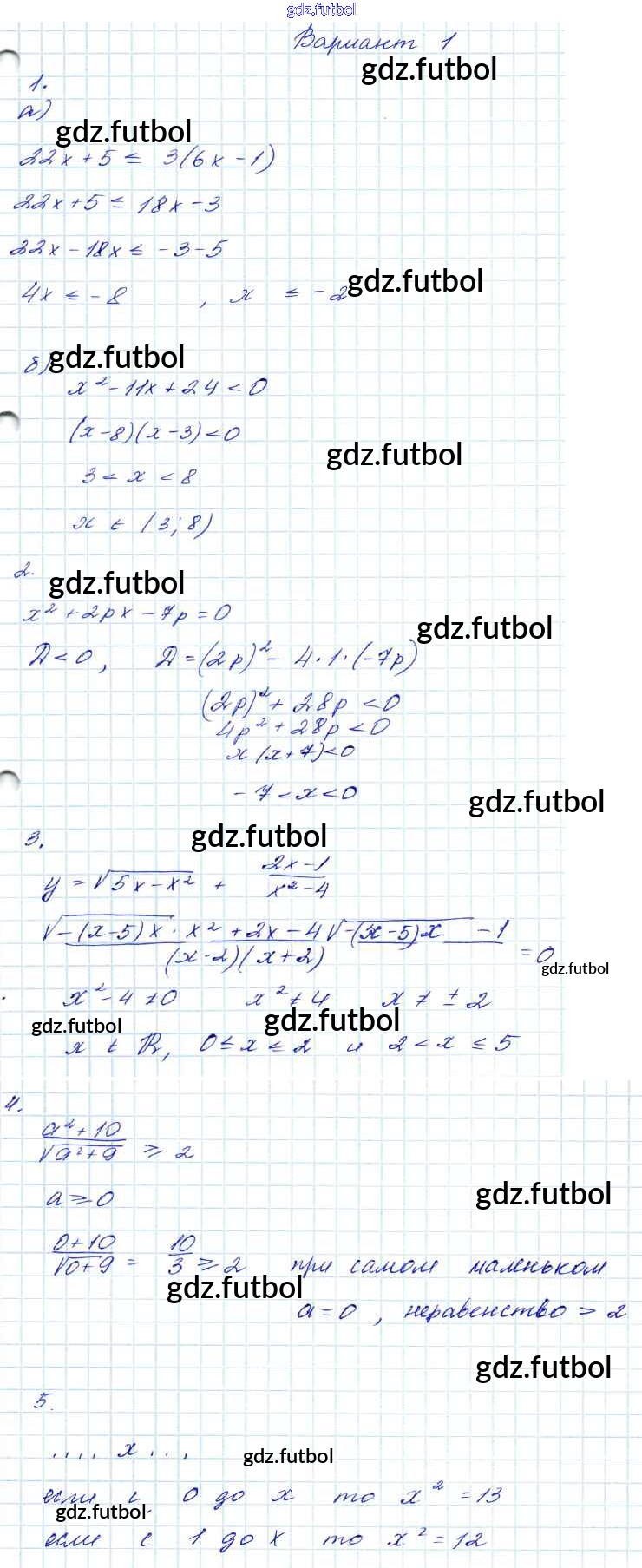 Готовые домашние задания по Алгебре за 9 класс Мордкович Контрольные работы  Углубленный уровень 2016 ФГОС - КР-9. Варианты 1