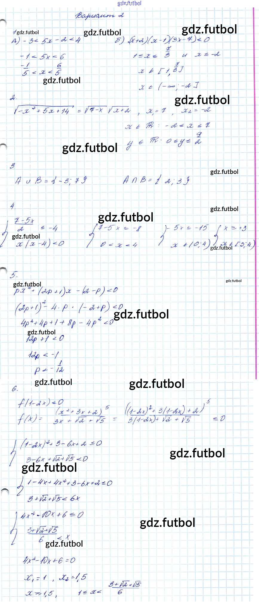 Готовые домашние задания по Алгебре за 9 класс Мордкович Контрольные работы Углубленный уровень 2016 ФГОС - КР-1. Варианты 2