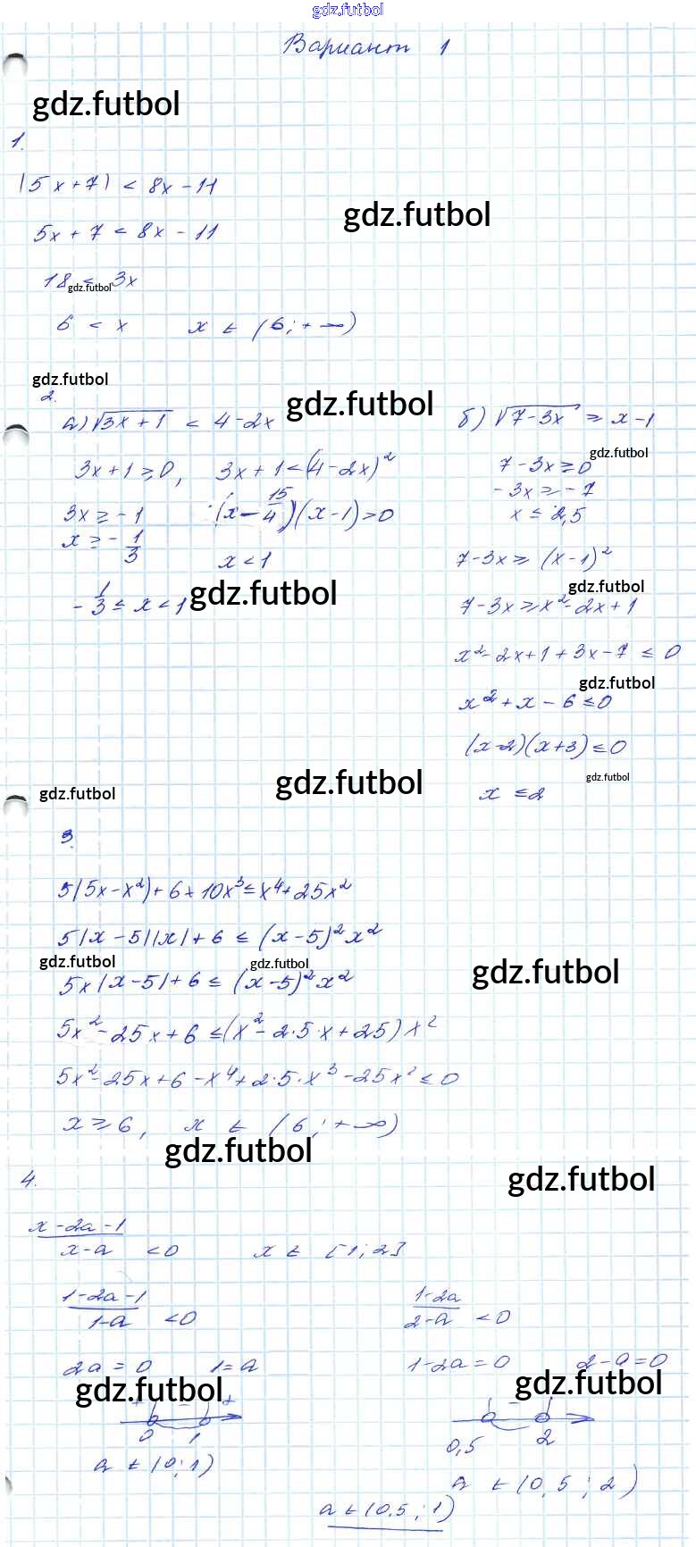 Готовые домашние задания по Алгебре за 9 класс Мордкович Контрольные работы Углубленный уровень 2016 ФГОС - КР-2. Варианты 1