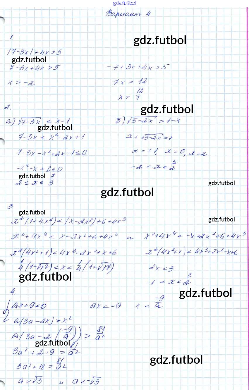 Готовые домашние задания по Алгебре за 9 класс Мордкович Контрольные работы Углубленный уровень 2016 ФГОС - КР-2. Варианты 4