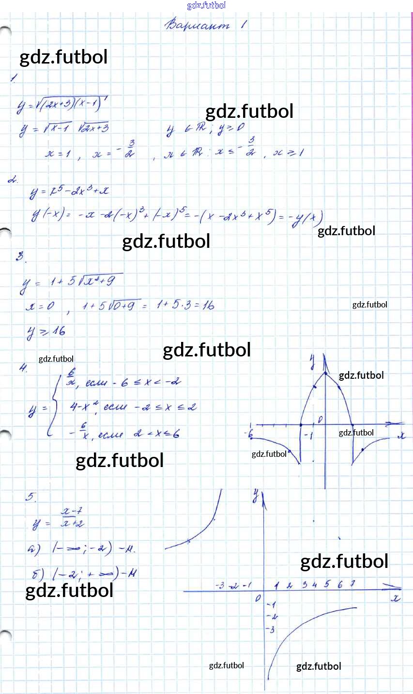 Готовые домашние задания по Алгебре за 9 класс Мордкович Контрольные работы Углубленный уровень 2016 ФГОС - КР-5. Варианты 1