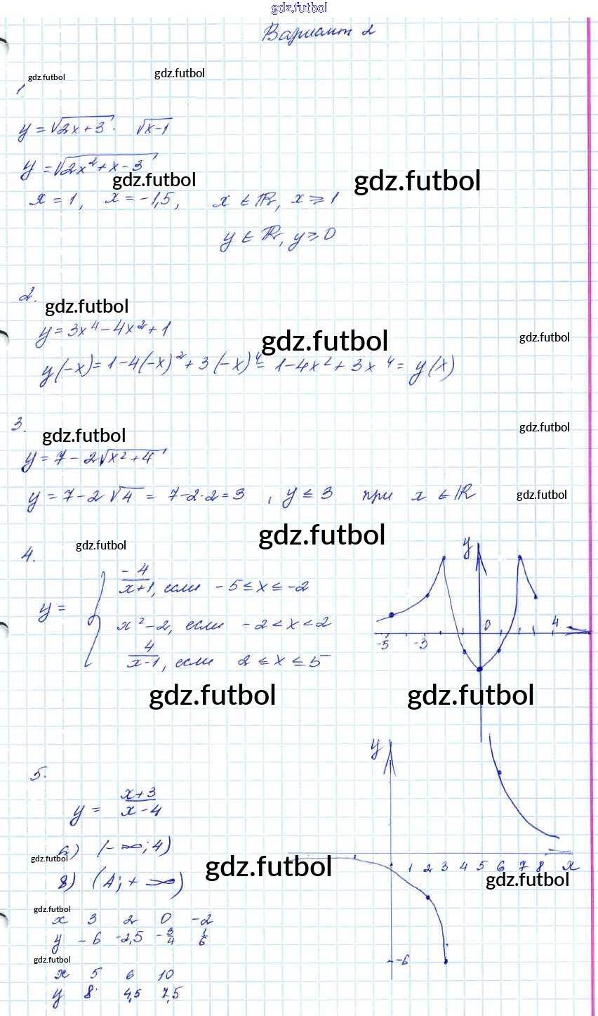 Готовые домашние задания по Алгебре за 9 класс Мордкович Контрольные работы Углубленный уровень 2016 ФГОС - КР-5. Варианты 2