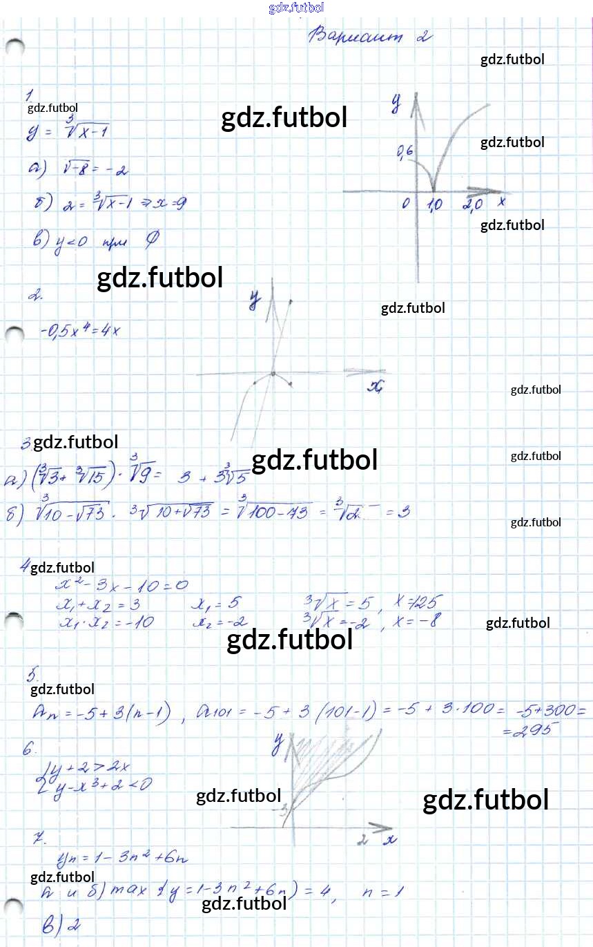 Готовые домашние задания по Алгебре за 9 класс Мордкович Контрольные работы  Углубленный уровень 2016 ФГОС - КР-6. Варианты 2