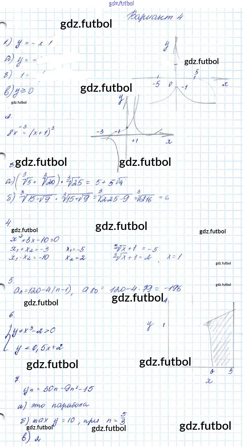 Готовые домашние задания по Алгебре за 9 класс Мордкович Контрольные работы Углубленный уровень 2016 ФГОС - КР-6. Варианты 4