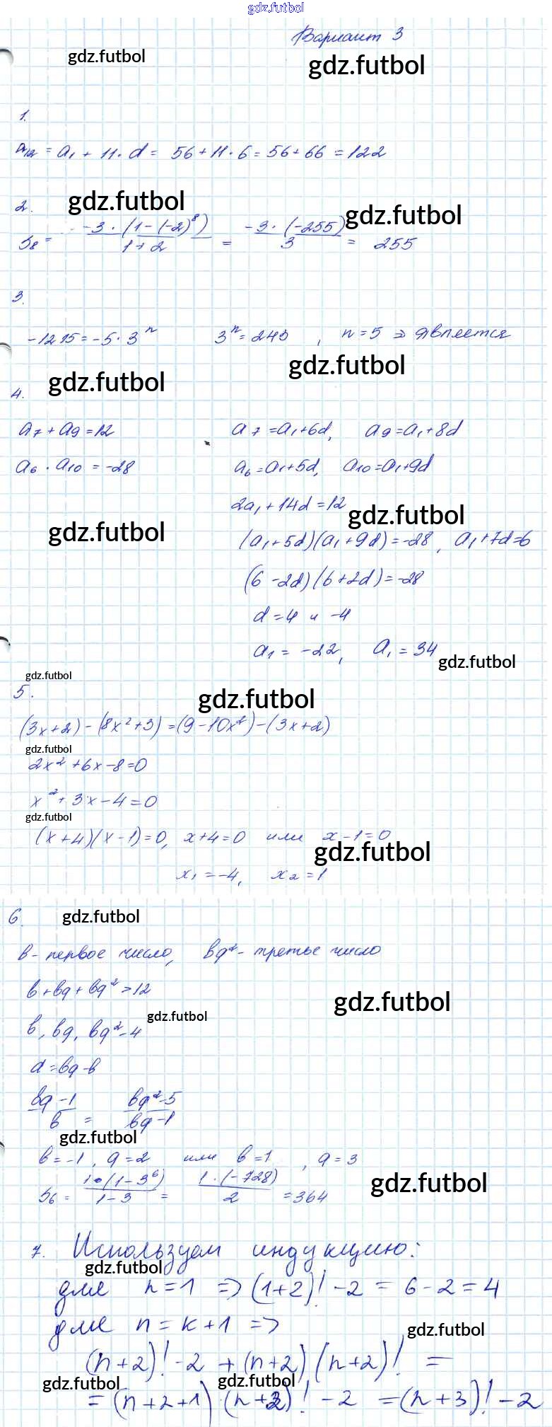 Готовые домашние задания по Алгебре за 9 класс Мордкович Контрольные работы Углубленный уровень 2016 ФГОС - КР-7. Варианты 3