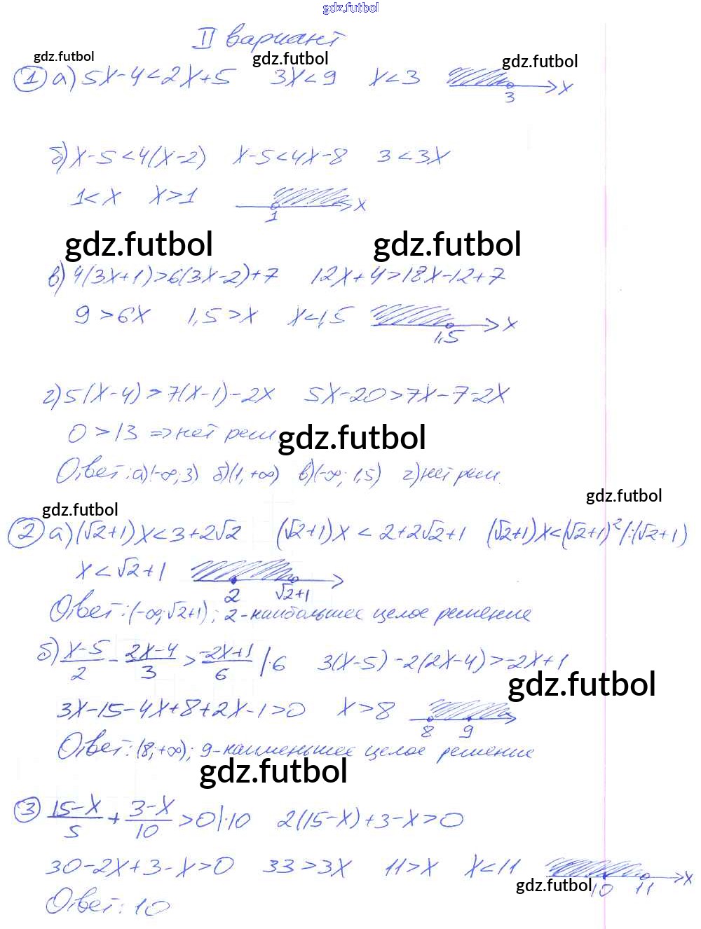 Готовые домашние задания по Алгебре за 9 класс Потапов Дидактические материалы МГУ - школе 2010 ФГОС - СР №1. Линейные неравенства с одним неизвестным вариант 2