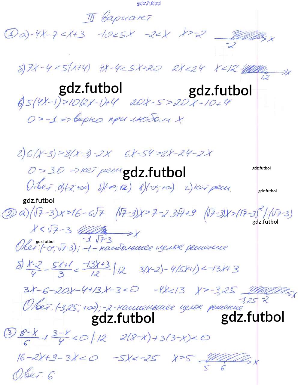 Готовые домашние задания по Алгебре за 9 класс Потапов Дидактические материалы МГУ - школе 2010 ФГОС - СР №1. Линейные неравенства с одним неизвестным вариант 3