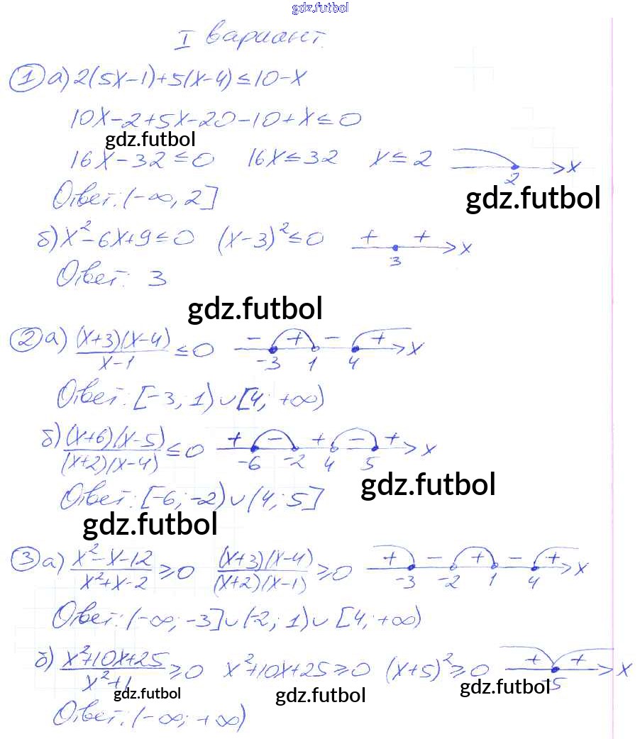 Готовые домашние задания по Алгебре за 9 класс Потапов Дидактические материалы МГУ - школе 2010 ФГОС - СР №10. Нестрогие неравенства вариант 1