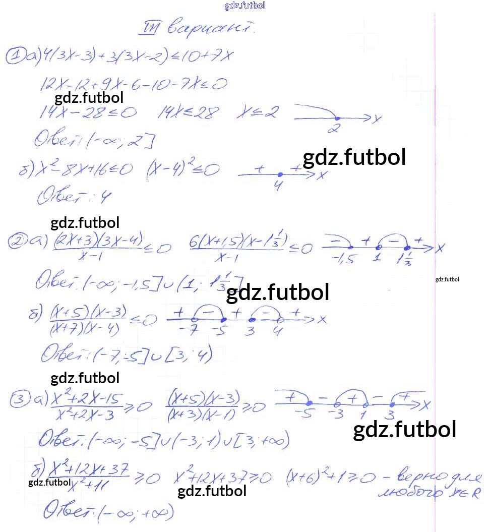 Готовые домашние задания по Алгебре за 9 класс Потапов Дидактические материалы МГУ - школе 2010 ФГОС - СР №10. Нестрогие неравенства вариант 3