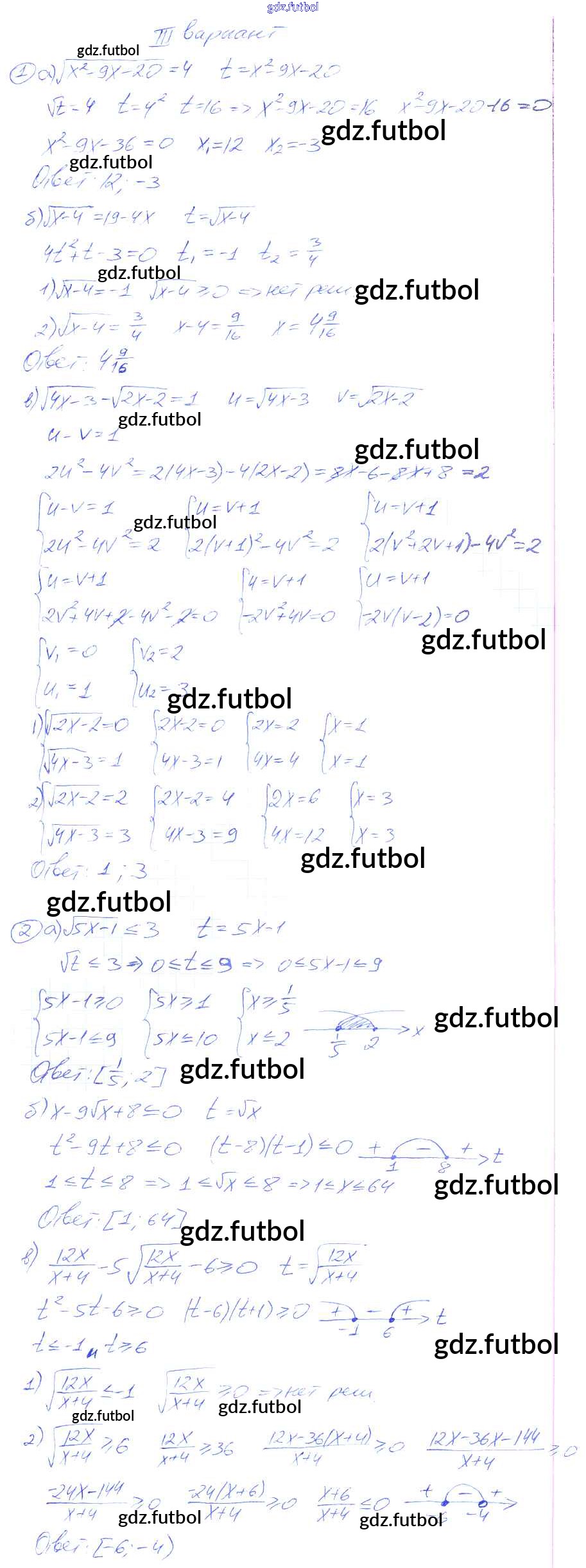 Готовые домашние задания по Алгебре за 9 класс Потапов Дидактические материалы МГУ - школе 2010 ФГОС - СР №13. Замена неизвестного при решении иррациональных уравнений и неравенств вариант 3