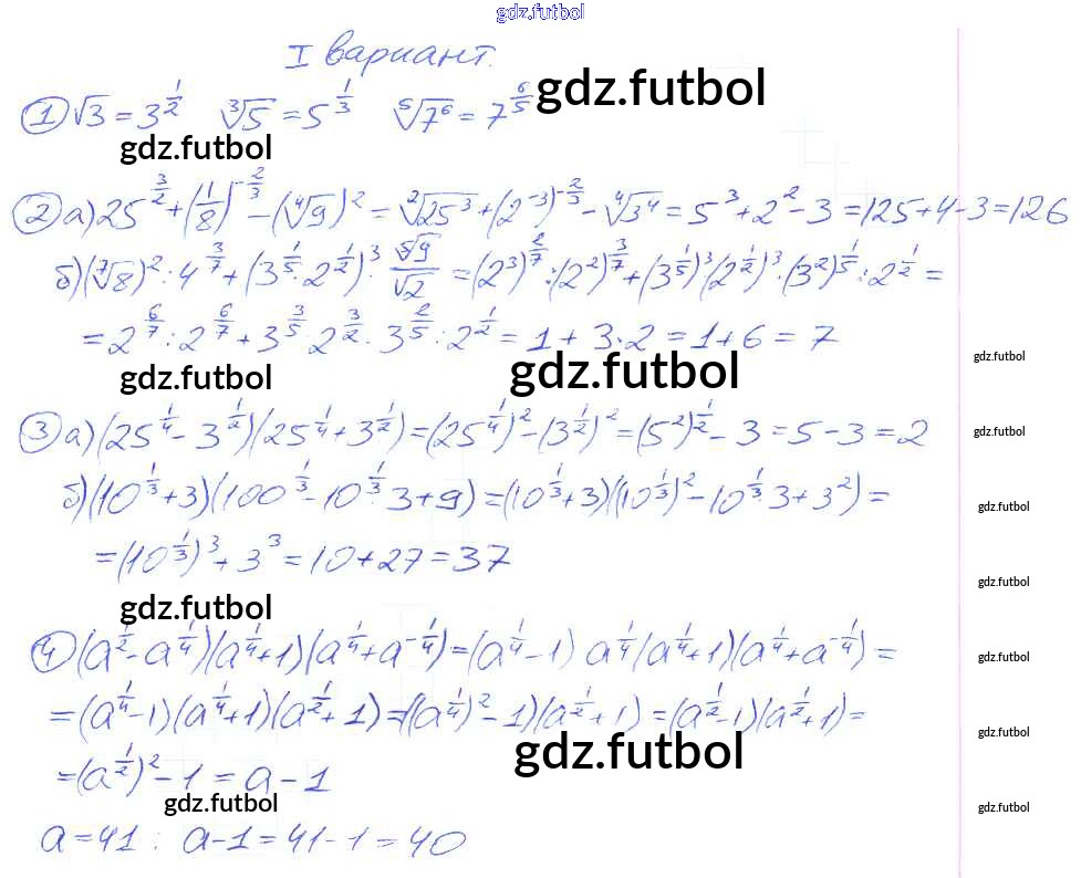 Готовые домашние задания по Алгебре за 9 класс Потапов Дидактические материалы МГУ - школе 2010 ФГОС - СР №16. Степень с рациональным показателем вариант 1