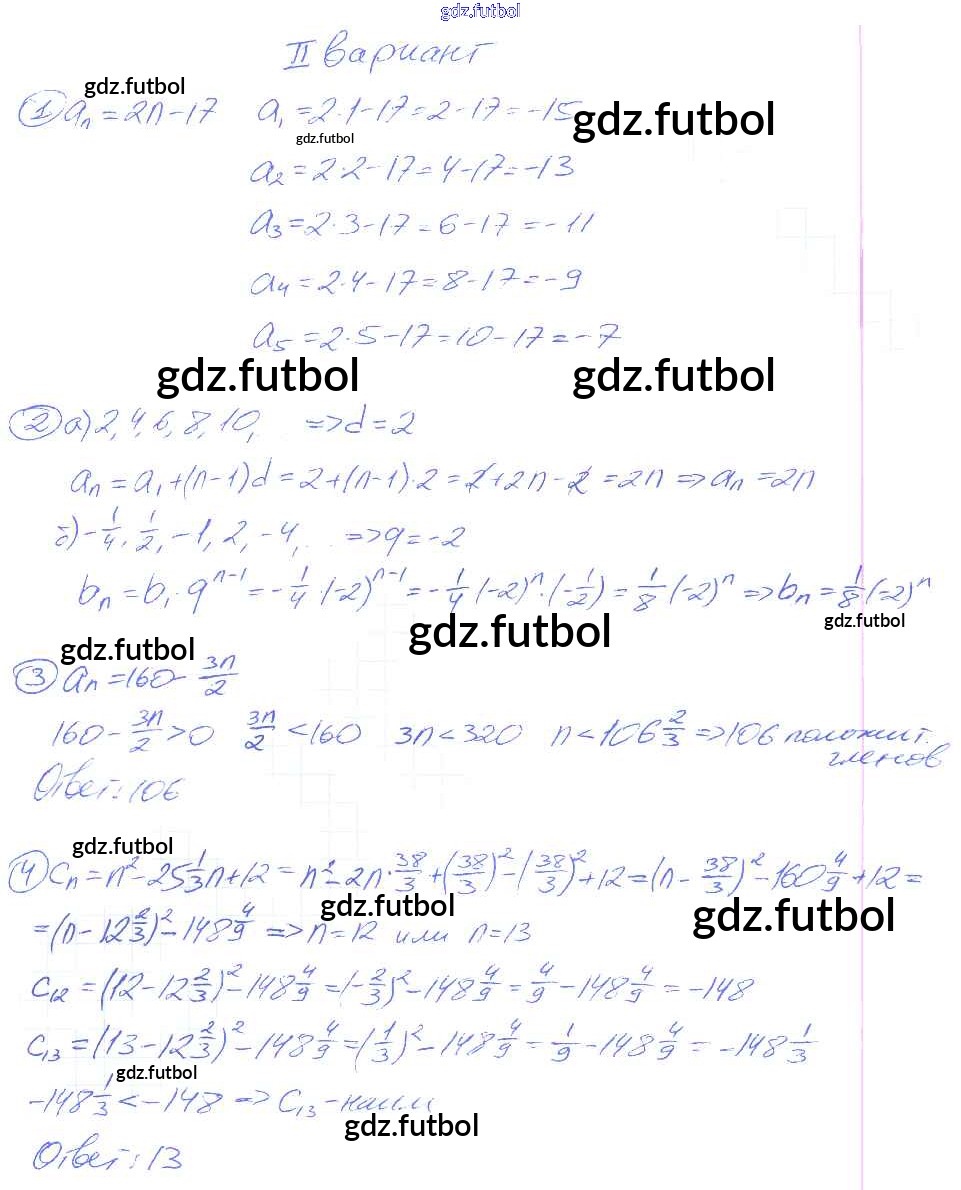 Готовые домашние задания по Алгебре за 9 класс Потапов Дидактические материалы МГУ - школе 2010 ФГОС - СР №17. Числовые последовательности вариант 2