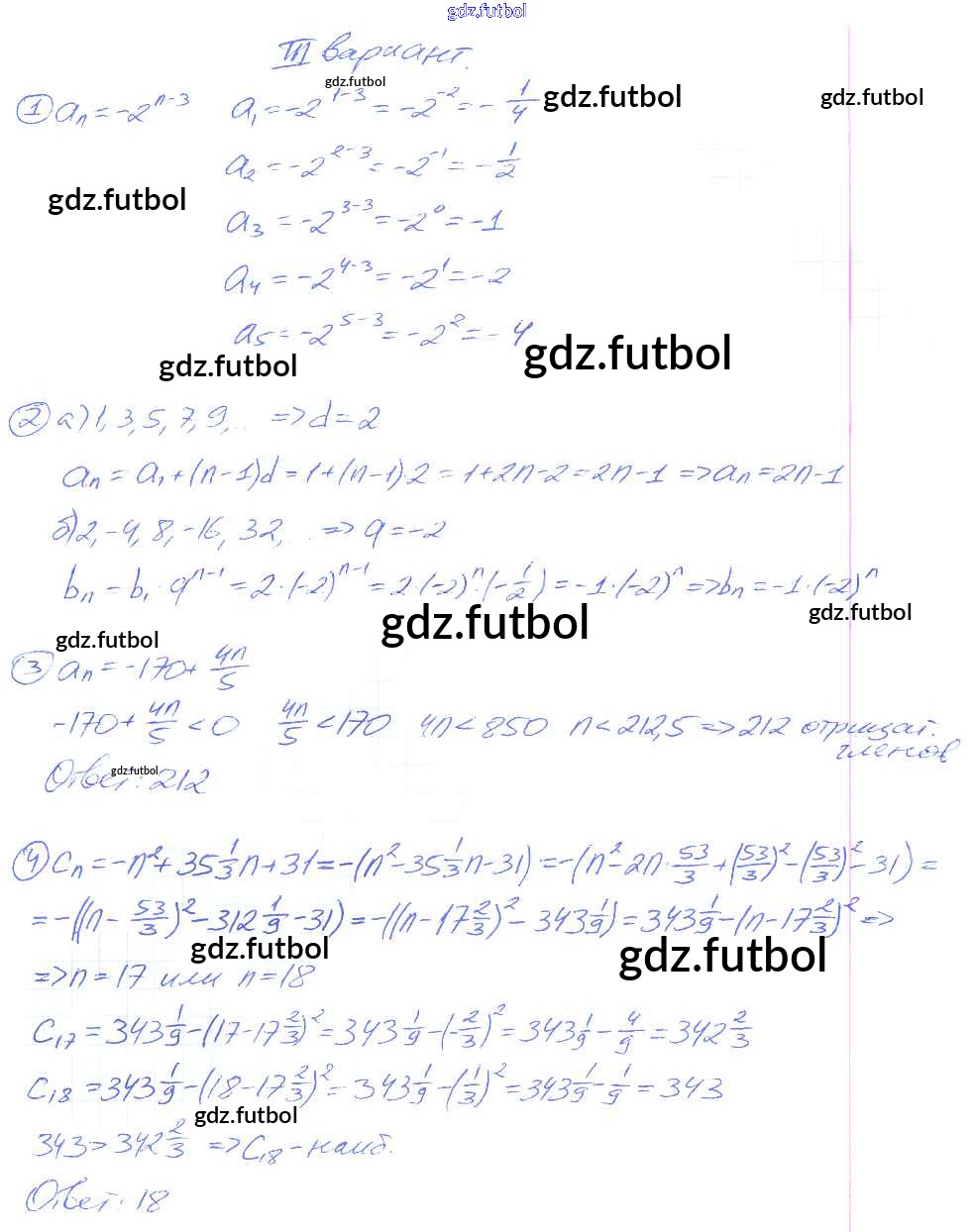 Готовые домашние задания по Алгебре за 9 класс Потапов Дидактические материалы МГУ - школе 2010 ФГОС - СР №17. Числовые последовательности вариант 3