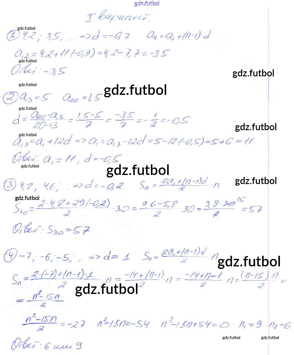 Готовые домашние задания по Алгебре за 9 класс Потапов Дидактические материалы МГУ - школе 2010 ФГОС - СР №18. Арифметическая прогрессия вариант 1