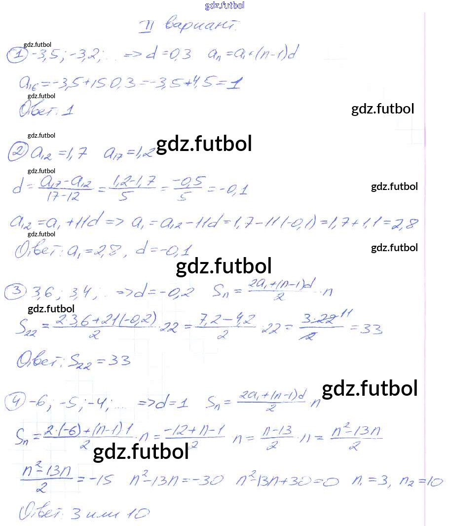 Готовые домашние задания по Алгебре за 9 класс Потапов Дидактические материалы МГУ - школе 2010 ФГОС - СР №18. Арифметическая прогрессия вариант 2