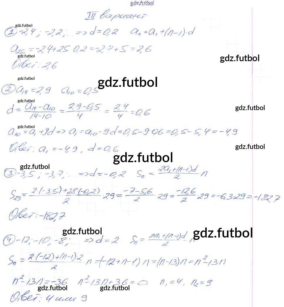 Готовые домашние задания по Алгебре за 9 класс Потапов Дидактические материалы МГУ - школе 2010 ФГОС - СР №18. Арифметическая прогрессия вариант 3