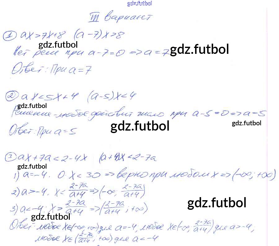 Готовые домашние задания по Алгебре за 9 класс Потапов Дидактические материалы МГУ - школе 2010 ФГОС - СР №2. Линейные неравенства с параметром вариант 3