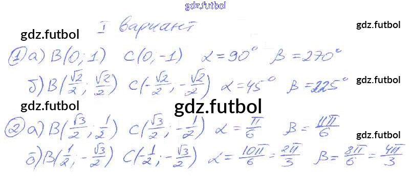 Готовые домашние задания по Алгебре за 9 класс Потапов Дидактические материалы МГУ - школе 2010 ФГОС - СР №22. Координаты некоторых точек единичной окружности вариант 1