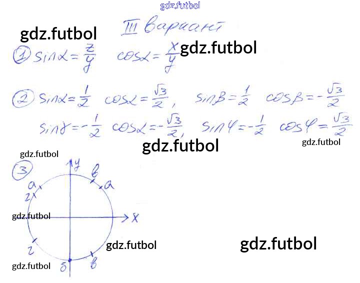 Готовые домашние задания по Алгебре за 9 класс Потапов Дидактические материалы МГУ - школе 2010 ФГОС - СР №23. Синус и косинус угла вариант 3