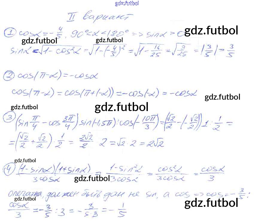 Готовые домашние задания по Алгебре за 9 класс Потапов Дидактические материалы МГУ - школе 2010 ФГОС - СР №24. Формулы для синуса и косинуса угла вариант 2