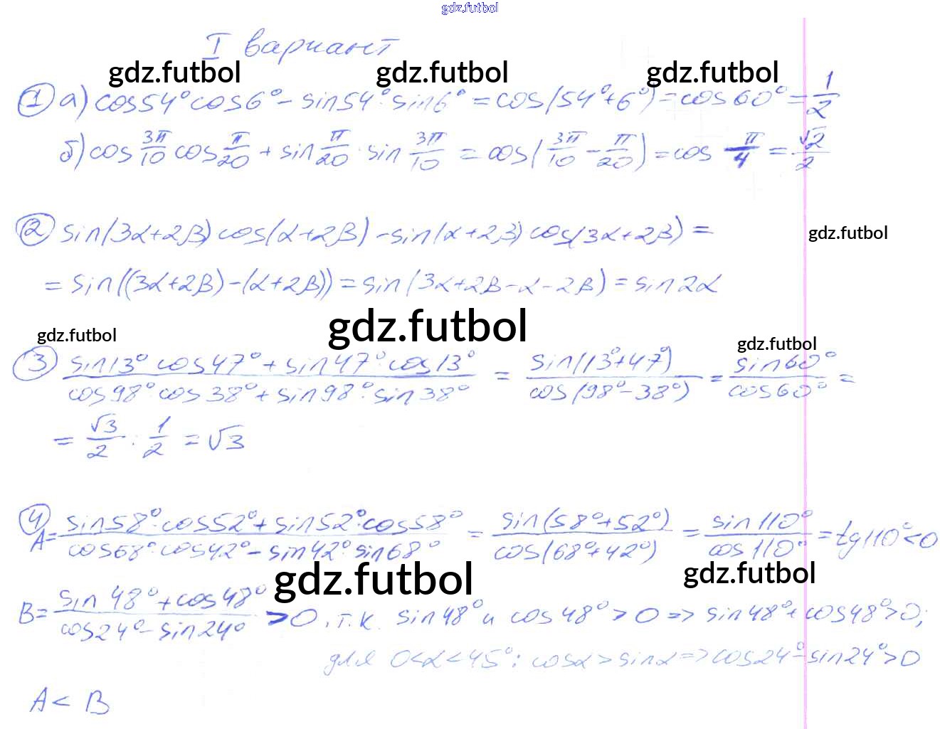 Готовые домашние задания по Алгебре за 9 класс Потапов Дидактические материалы МГУ - школе 2010 ФГОС - СР №26. Косинус суммы и косинус разности двух углов. Синус суммы и синус разности двух углов вариант 1