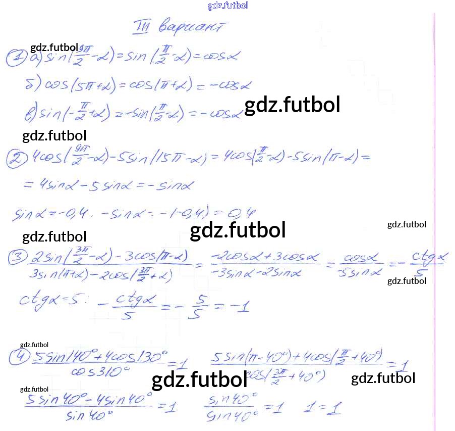 Готовые домашние задания по Алгебре за 9 класс Потапов Дидактические материалы МГУ - школе 2010 ФГОС - СР №27. Формулы приведения для синуса и косинуса вариант 3